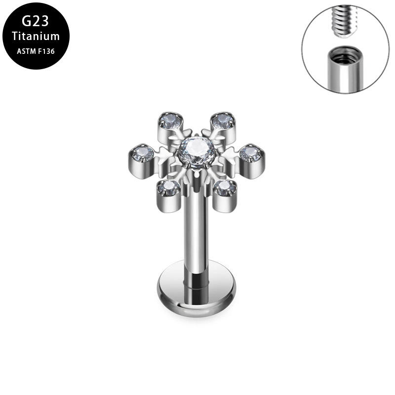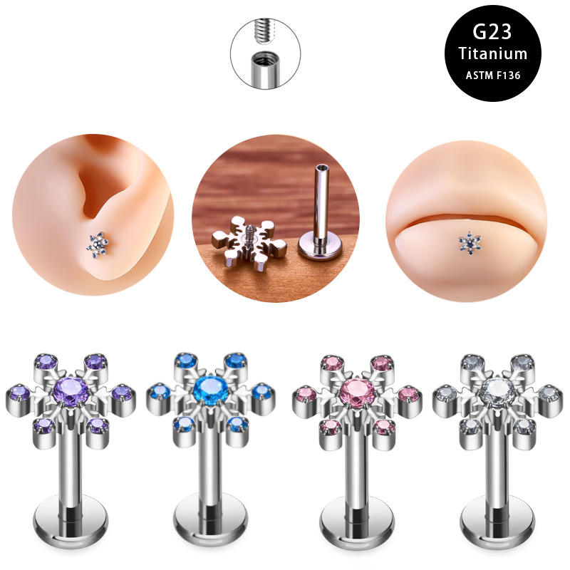 Bijoux de piercing en titane F136, boucles d'oreilles clous en zircon et cristal, plaqué or, labret à filetage interne pour lèvre, nez, hélix, conque