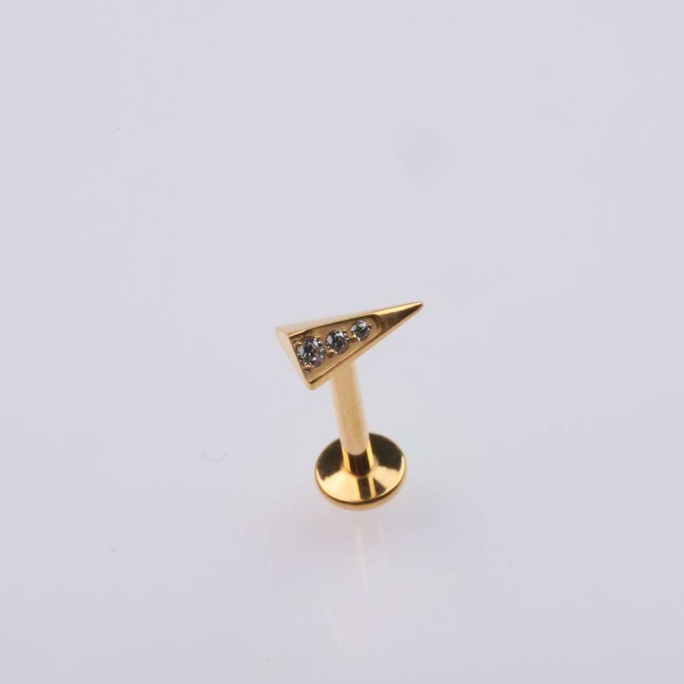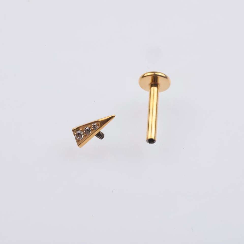 Labret Triangle en Titane F136 : Plaqué Or PVD, Boucle d'Oreille à Dos Plat Fileté Internement, Bijou de Piercing de Haute Qualité