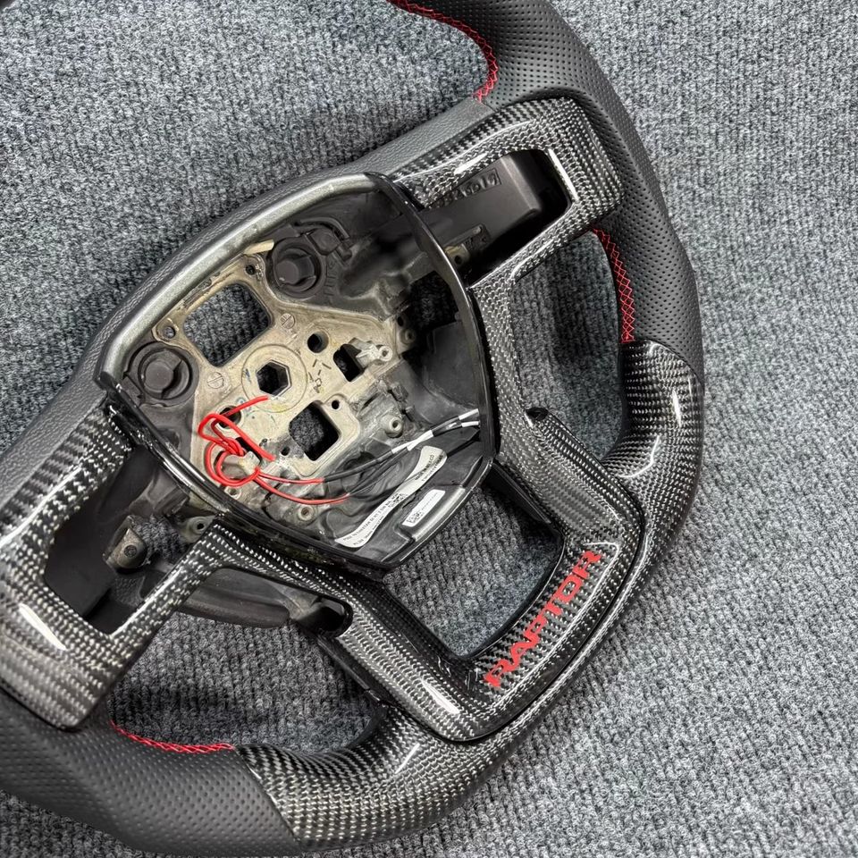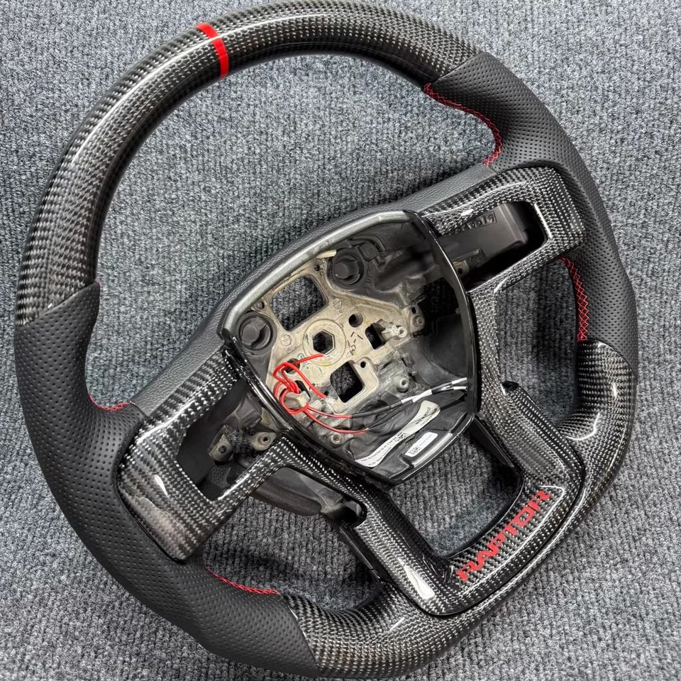 Volant de voiture de sport F150 Raptor Racing en fibre de carbone véritable avec bande centrale pour camion Ford F 150