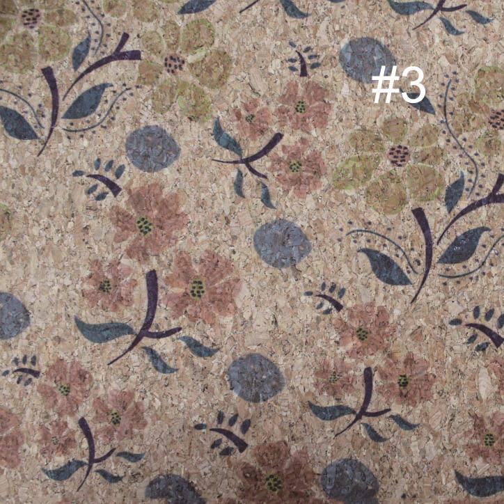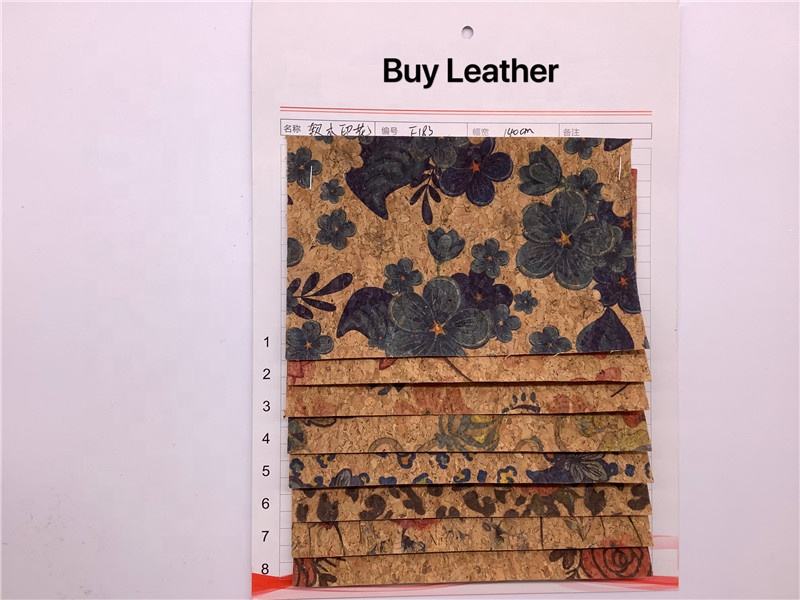F183 Floral Printed Cork Leather Woven Backing Customizable Versatile Nature-inspired Bags Purse Wallets Hats Handcrafts Sofa