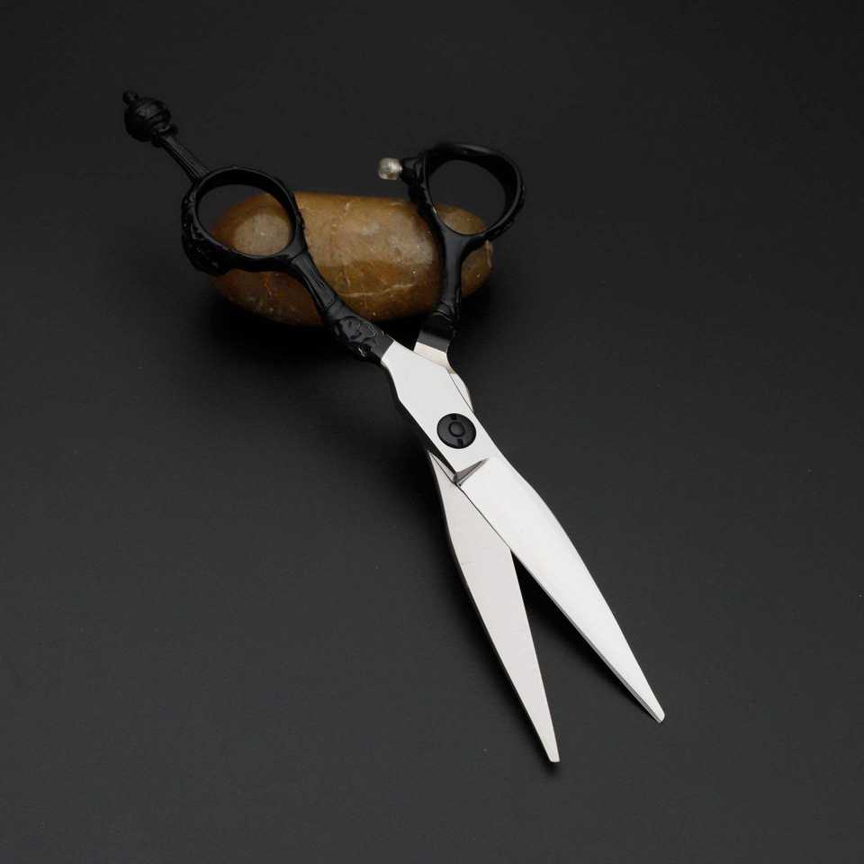 F190 6.0 Inches High-End Black Crown Tail Nail Hairdressing Scissors Straight Stainless Steel Blade 6cr13 Beauty Sharp Tip Hair