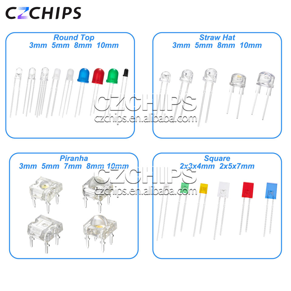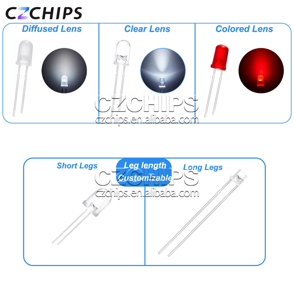 F3/F5/F8/F10 perles de lampe à LED 5mm blanc rouge lumière 3mm chapeau de paille en forme de brume droite insérée perle de mise en évidence