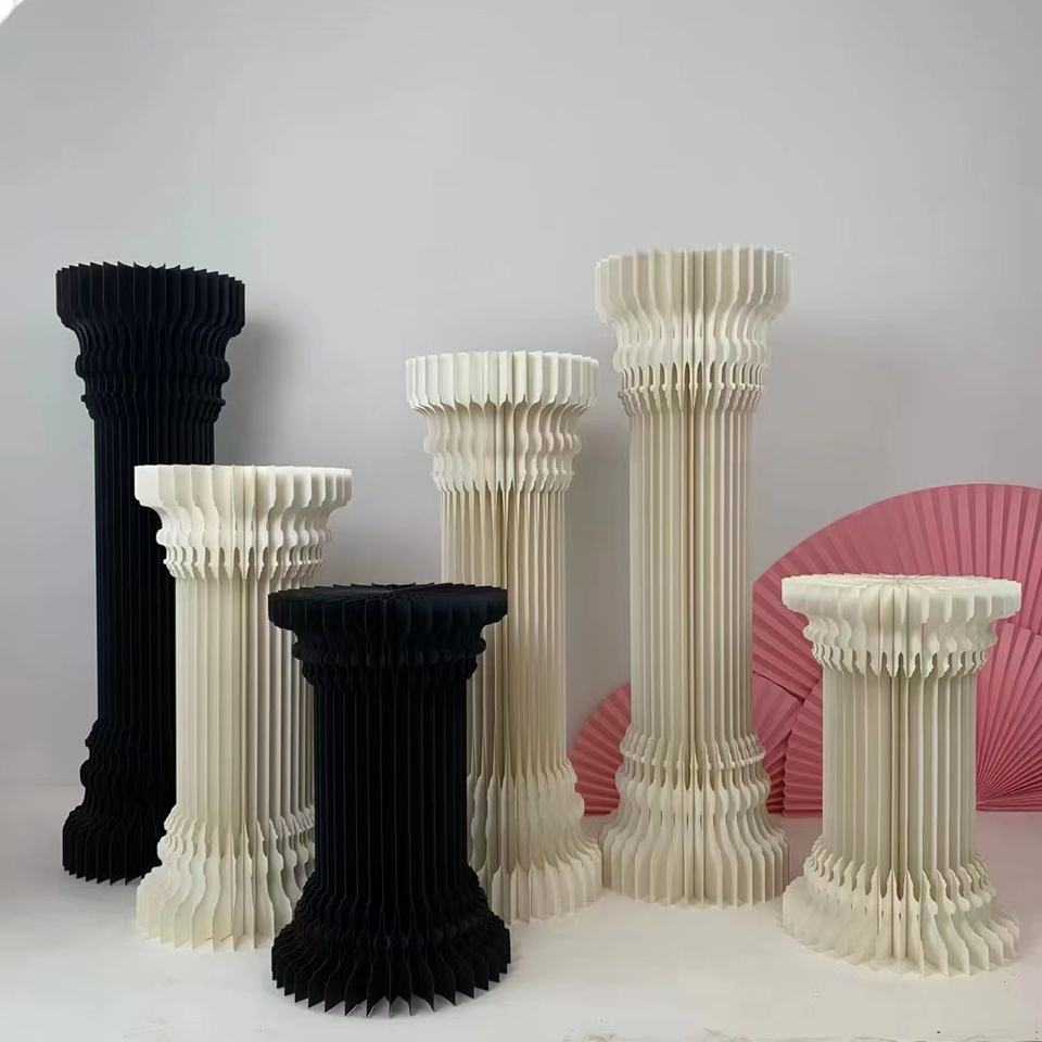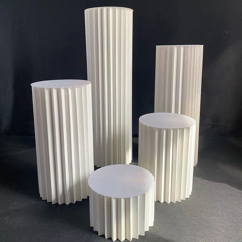 F3 haute qualité nouveaux accessoires de mariage plié cylindrique Dessert Table papier colonne romaine route plomb ornements fête d'anniversaire mise en page