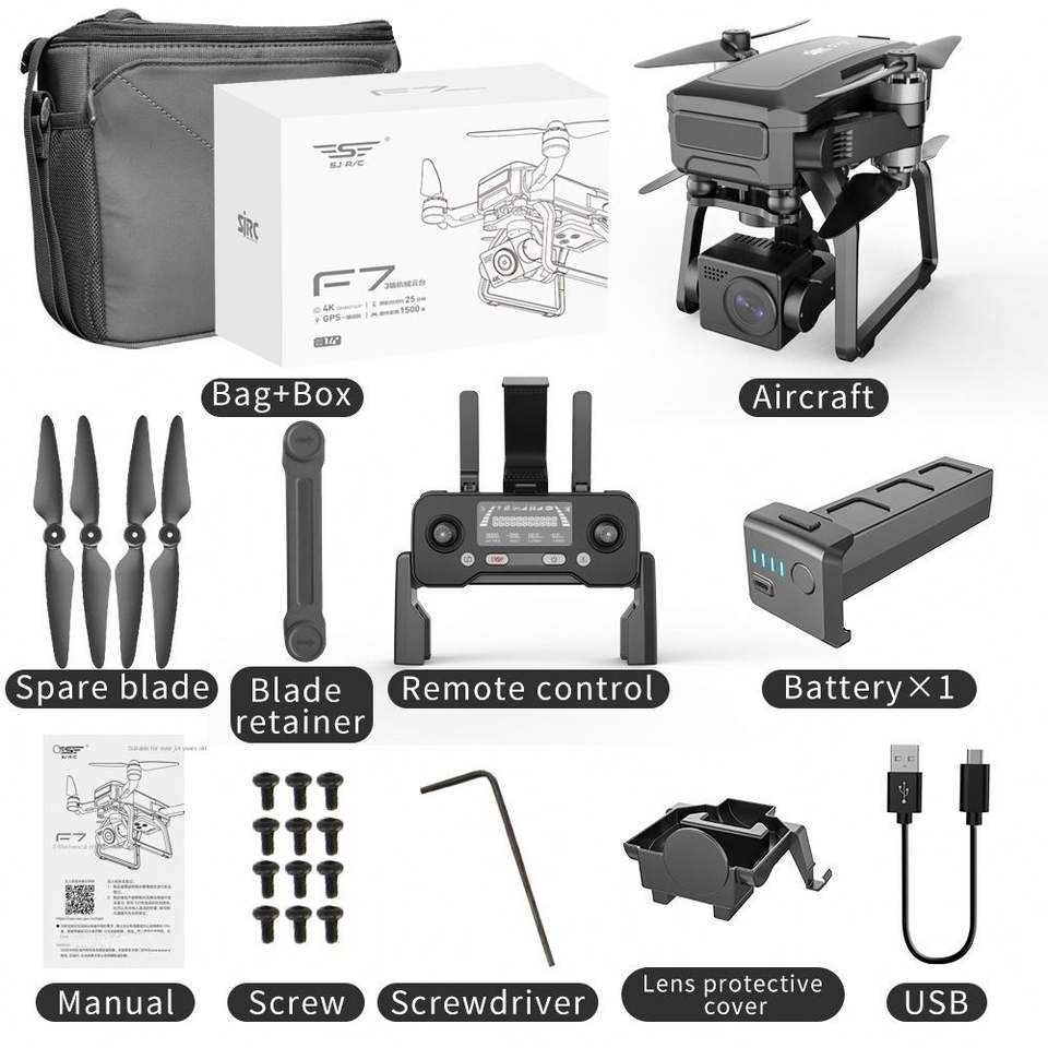 Drone pliable F7S PRO 4K HD avec caméra aérienne PTZ anti-tremblement à trois axes, moteur sans balais et télécommande