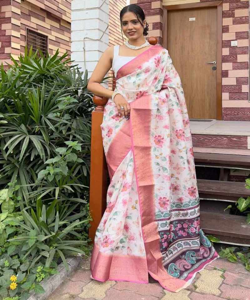 FABULOUS DOLA KANJIVARAM SILK WEAVING DIGITAL PRINT SAREE WITH UNSTITCHED BLOUSE DAILY WEAR WHOLESALE PRICE ETHNIC GARMENT