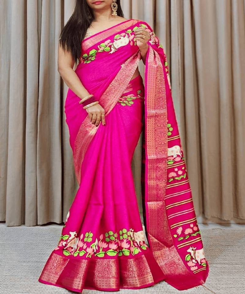 Work:Weaving, Jacquard, Banarasi silk, Cotton silk