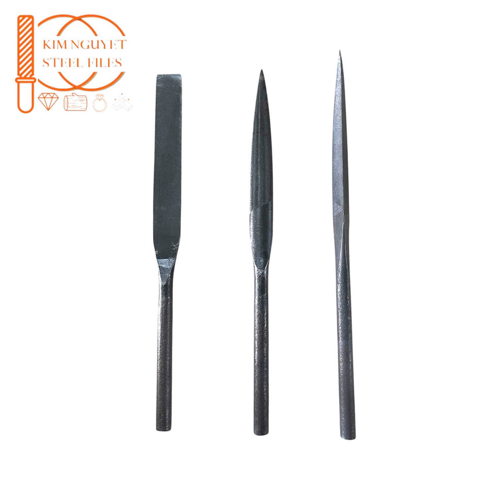 Prix usine – Lot de 3 types de limes à aiguille triangulaires D20 de 200 mm – Outils industriels et de bricolage pour bijoux personnalisés – Coupe lisse, extrémités coniques, naturelles