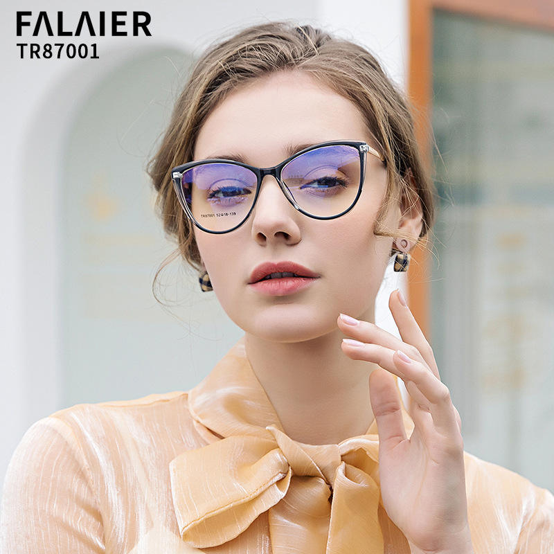 Montures de lunettes optiques FALAIER Cat Eye TR87001, anti-lumière bleue, anti-radiation, pour femmes, monture TR90, taille moyenne