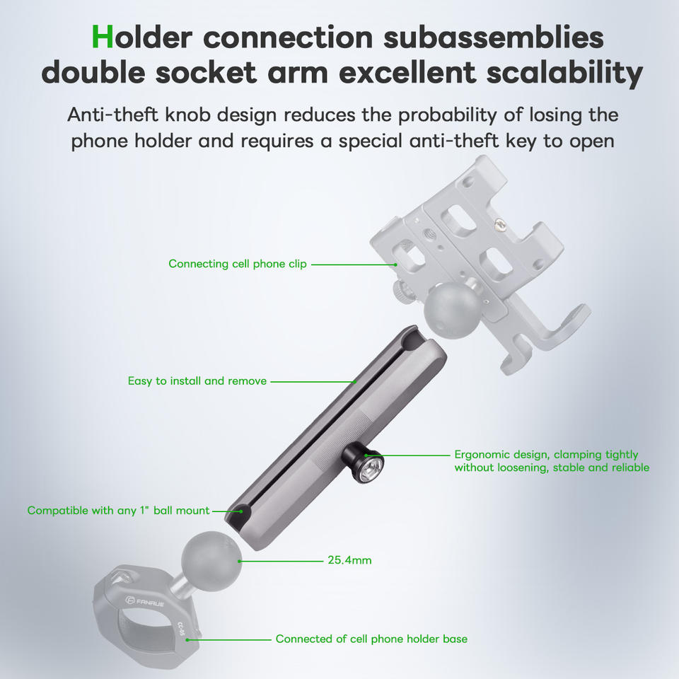 FANAUE-150F antivol vélo/moto support de téléphone avec pour RAM monte B taille rotule Double prise bras caractéristiques flexibles