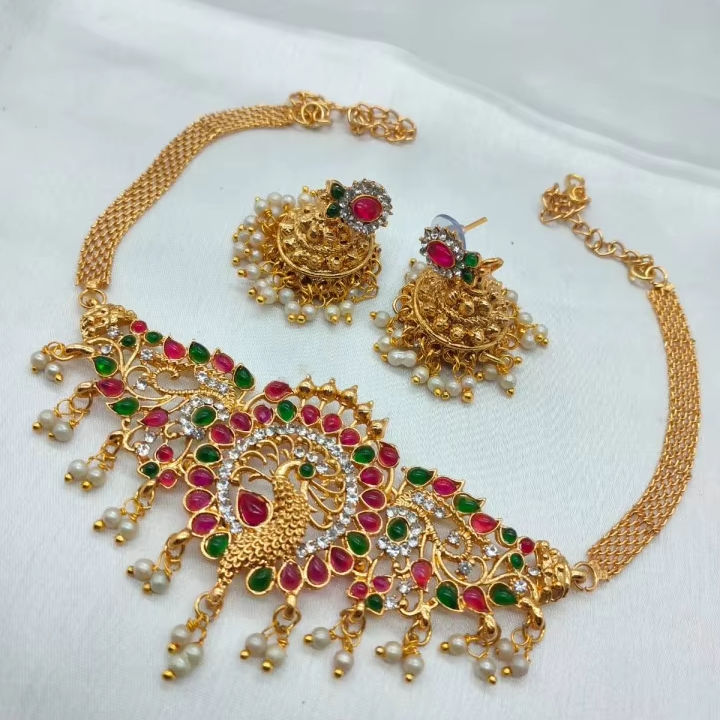 ENSEMBLE DE BIJOUX FANTAISIE ANTIQUE TRADITIONNEL ET À LA MODE DU TEMPLE INDIEN DU SUD ET ENSEMBLE DE COLLIER SUD EN CUIVRE POUR FEMMES NAD GIRLS
