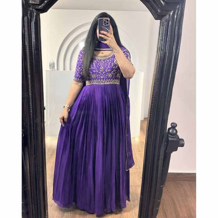 FANCY CHINON SILK EMBROIDERY THREAD WORK GOWN WITH DUPATTA PURPLE