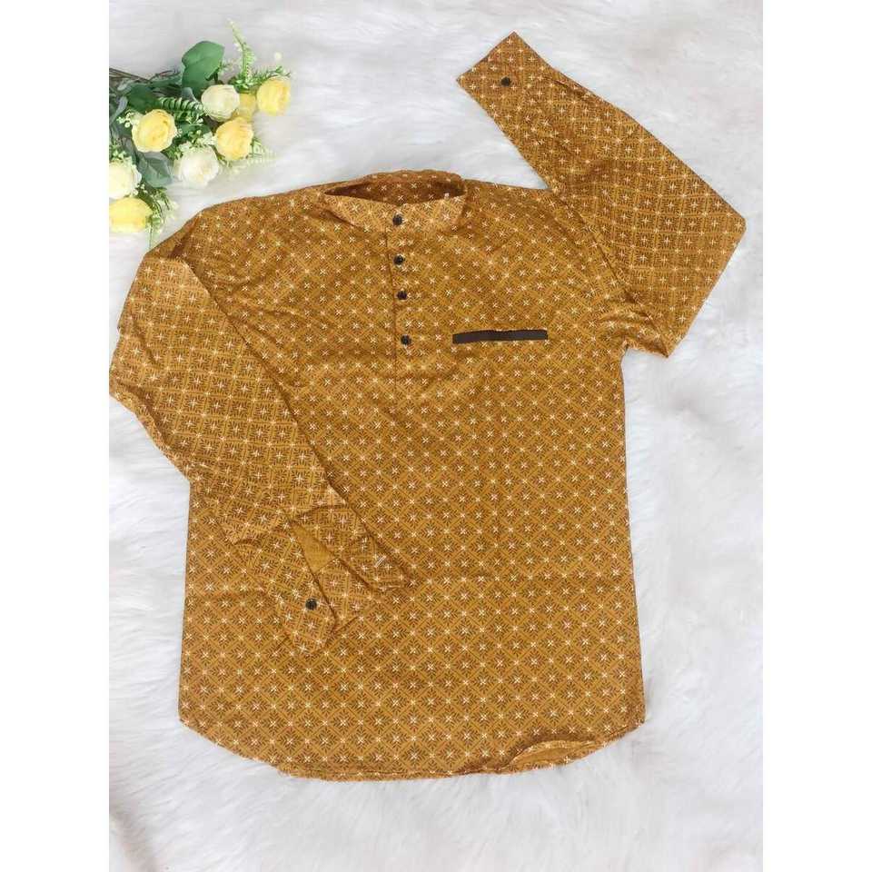 CHEMISE HOMME IMPRIMÉ MAIN EN COTON FANTAISIE MOUTARDE
