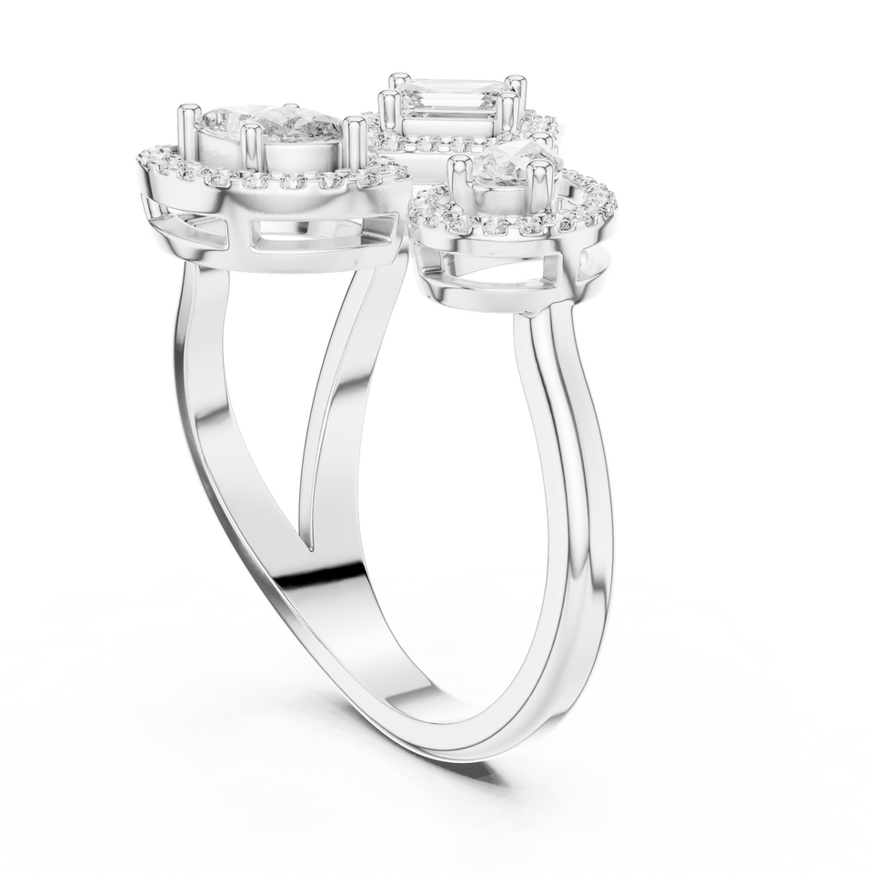 Parure de bagues en or blanc 18 carats plaqué rhodium avec diamants de laboratoire fantaisie, motifs floraux et taille mixte, certifiée, pour fiançailles, fêtes, mariages et usage quotidien