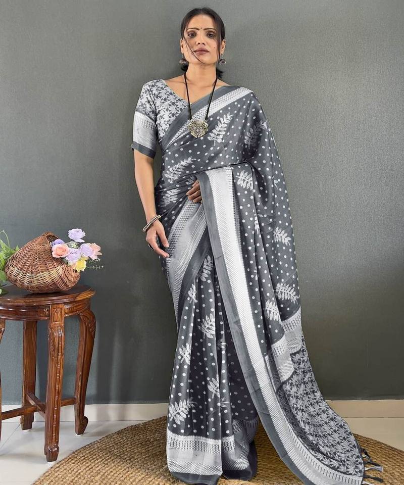 FANTAISIE MOSS SILK IMPRIMÉ TRAVAIL PRÊT À PORTER SAREE AVEC CHEMISIER NON COUCHÉ VÊTEMENT FESTIF PRIX DE GROS VÊTEMENT ETHNIQUE NOIR
