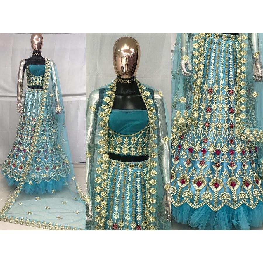 FILET FANTAISIE BRODERIE AVEC DIAMANT LEHENGA CHOLI AVEC DUPATTA MENTHE