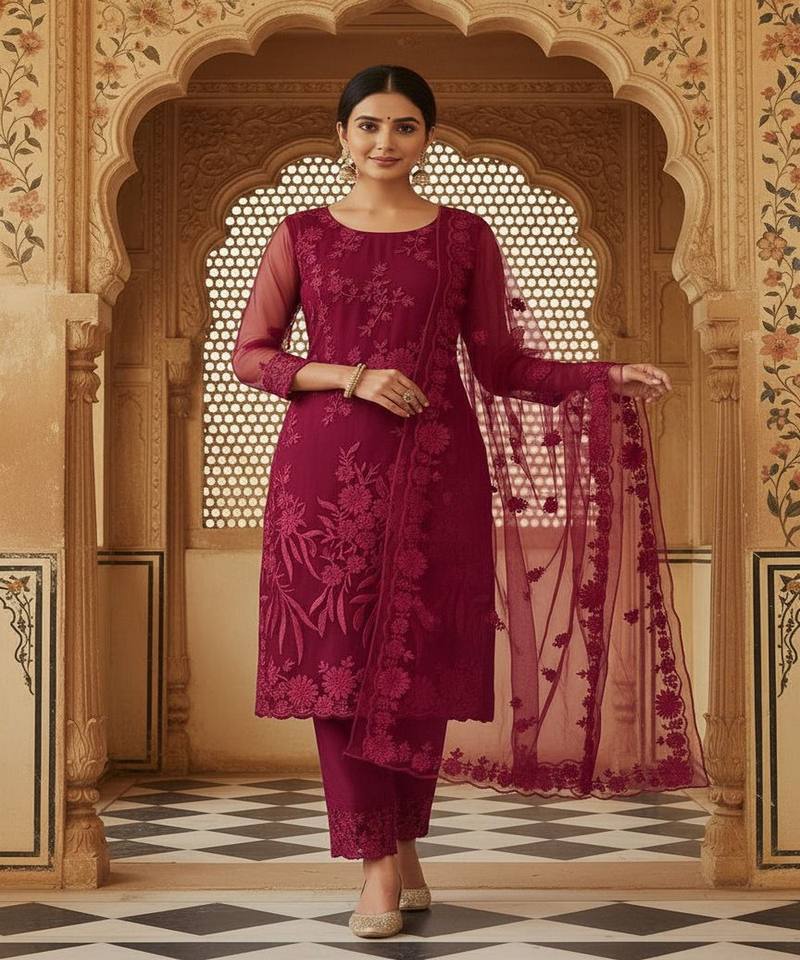 Numéro de Type:Net Embroidery Salwar kameez suit