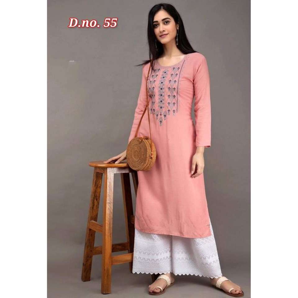 FANCY RAYON EMBROIDERY WORK KURTI WITH PALAZZO BABY PINK