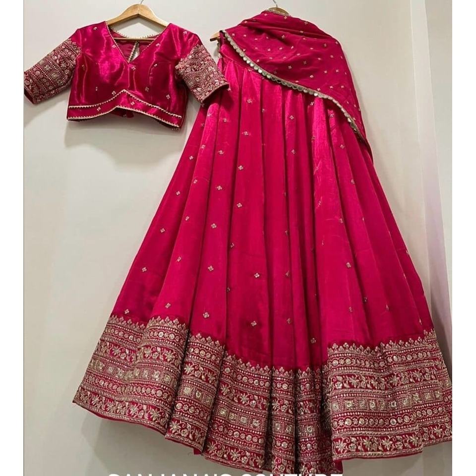 FANTAISIE SATIN SOIE BRODERIE TRAVAIL LEHENGA CHOLI AVEC DUPATTA ROSE