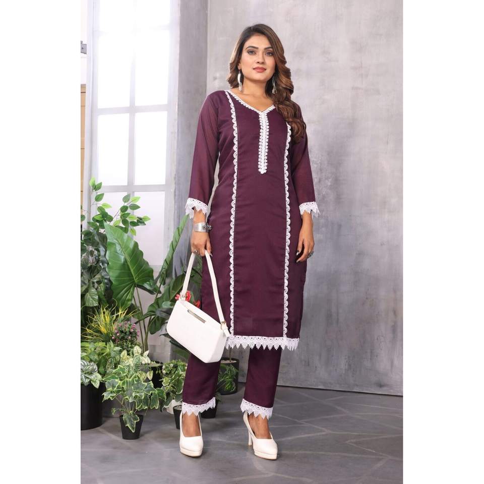 FANCY STAR GEORGETTE COTTON LACE BORDER WORK TOP PANT SET MAROON