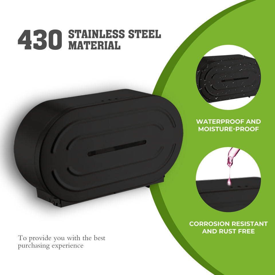 Distributeur de papier toilette double FANDA en acier moderne, 9 pouces, écologique, format jumbo