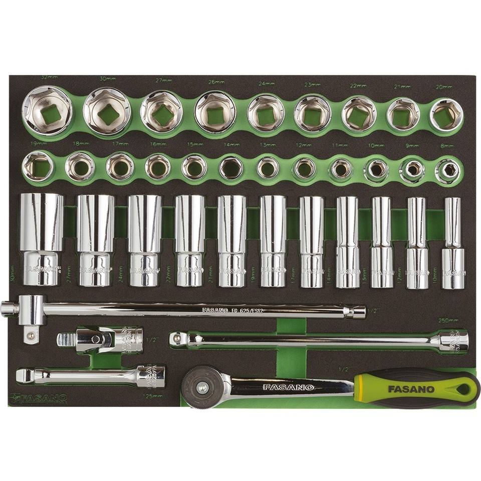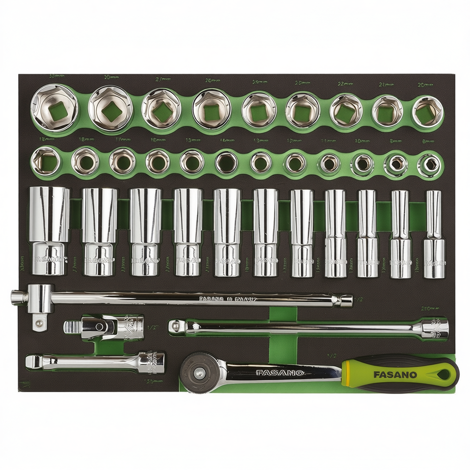 Jeu de douilles FASANO 1/2 pouce, 21 pièces, métrique, kit d'outils de réparation automobile