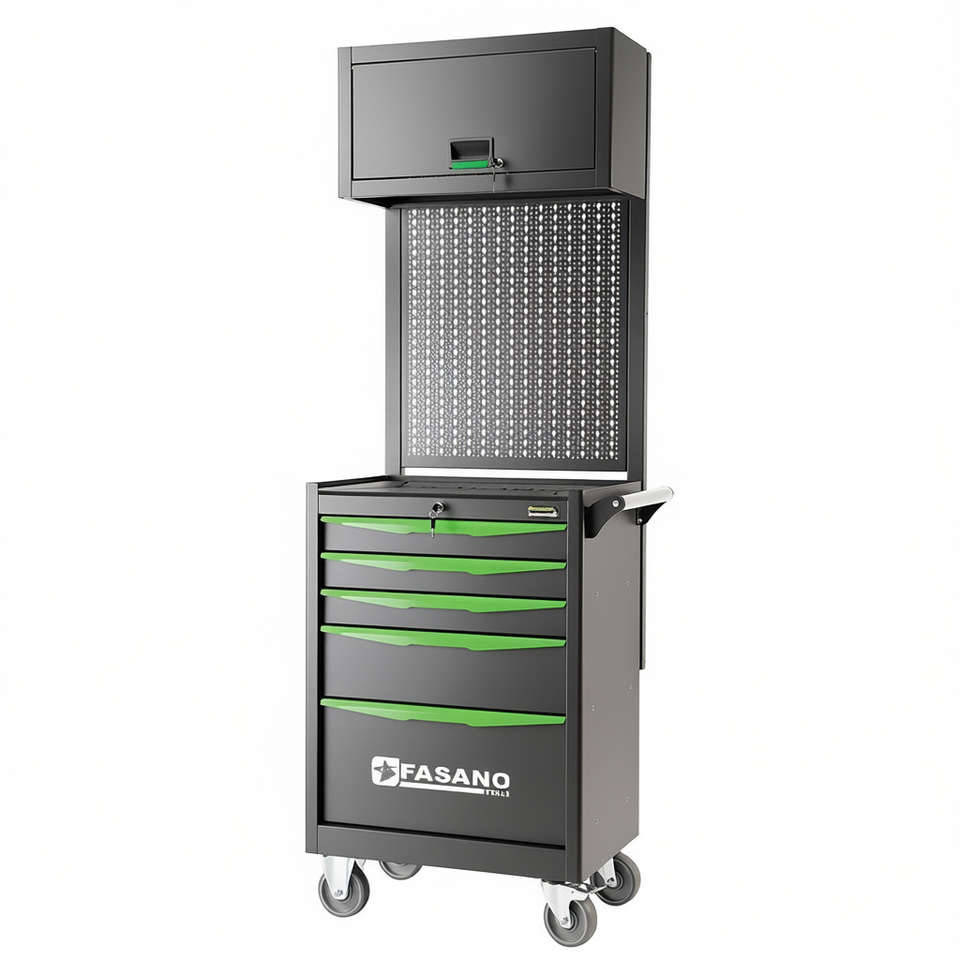 Armoire à outils roulante FASANO, 5 tiroirs, poignée verte, chariot de rangement pour atelier industriel