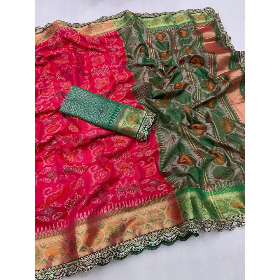 BANARASI SOIE À LA MODE TISSANT BRODERIE DENTELLE TRAVAIL SAREE AVEC CHEMISIER NON COUDU RANI