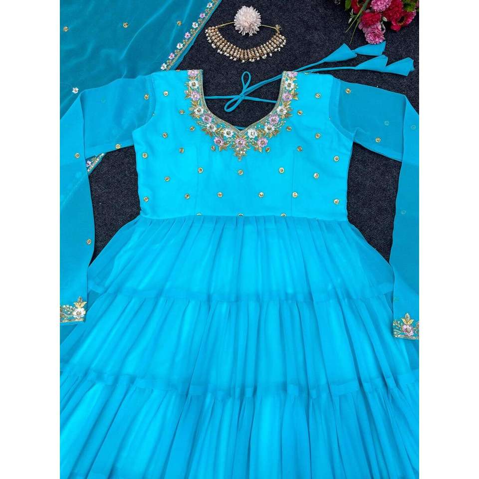 SEQUENCE DE FIL GEORGETTE À LA MODE ROBE DE TRAVAIL BAS AVEC DUPATTA SKY