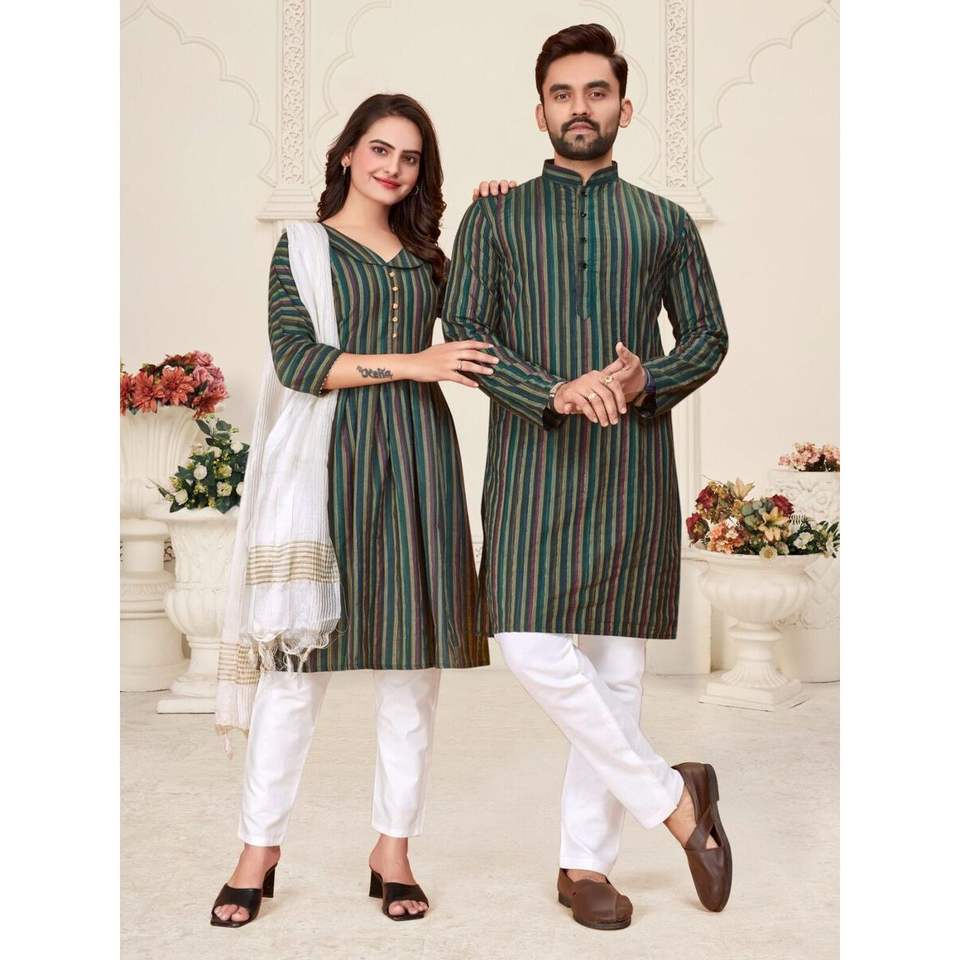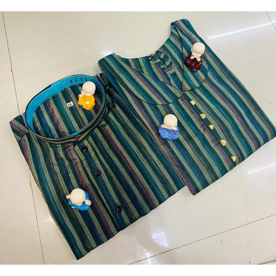JACQUARD EN COTON LIN À LA MODE POUR COUPLE VERT