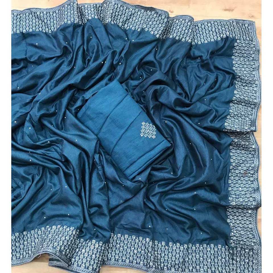 SAREE DE TRAVAIL EN DENTELLE DE SOIE À LA MODE AVEC BLOUSE INCOSÉE SARCELLE
