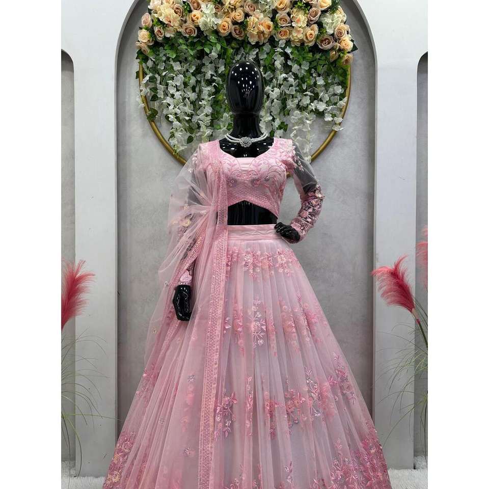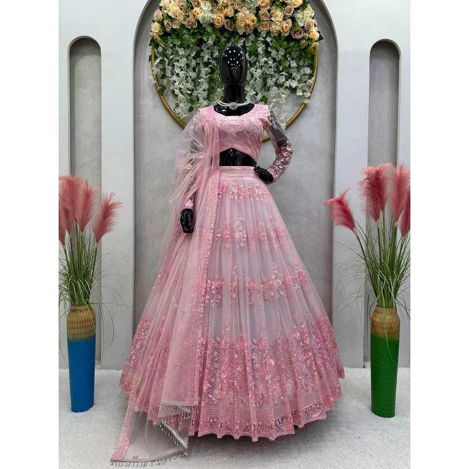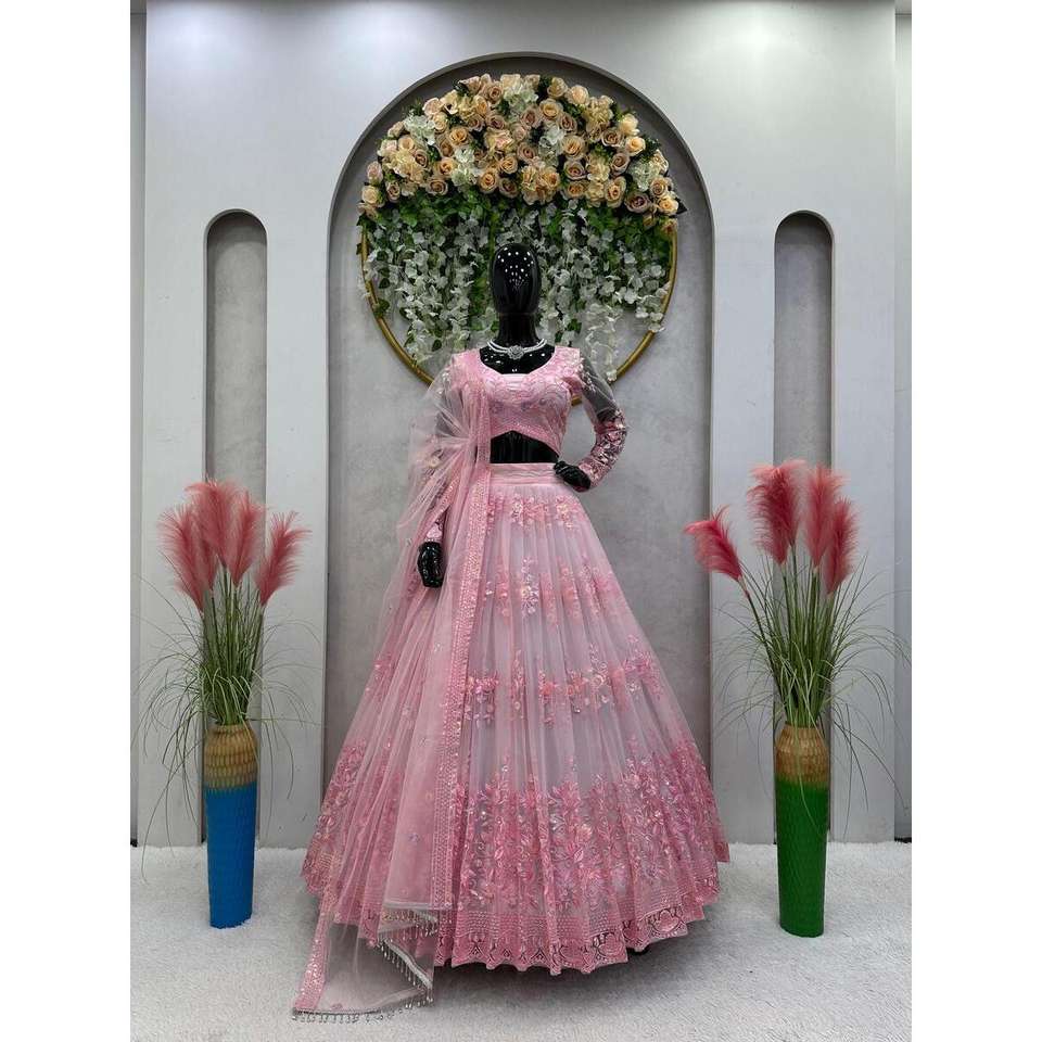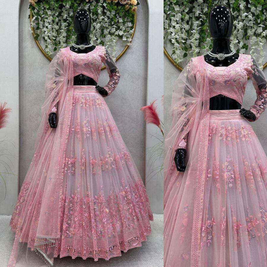 LEHENGA CHOLI à sequins en filet doux et tendance avec DUPATTRA ROSE BEBÉ