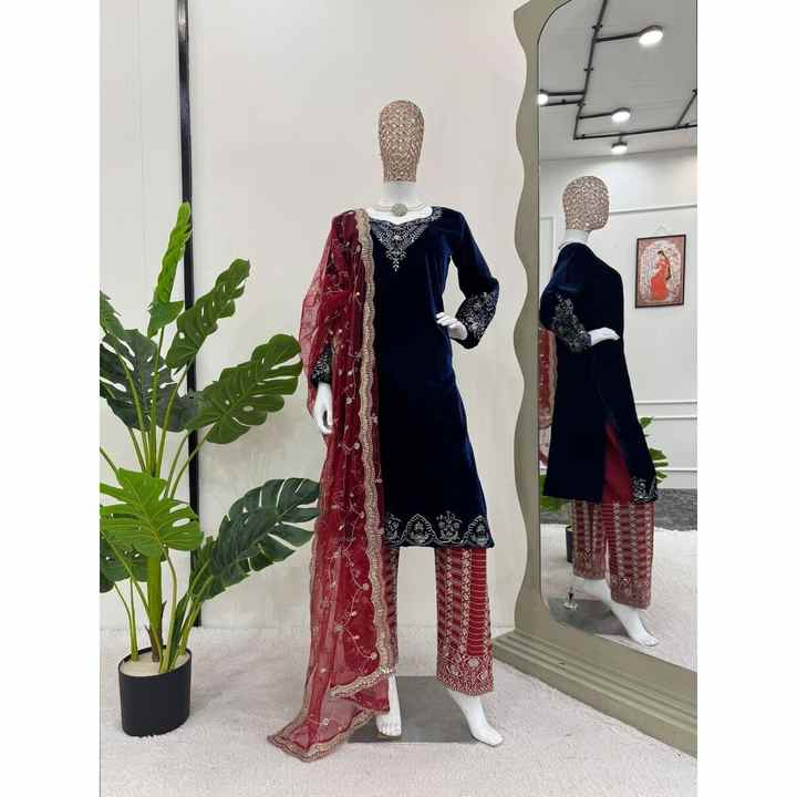 FIL DE VELOURS VISCOSE À LA MODE SÉQUENCE TRAVAIL DESSUS AVEC DUPATTA BLEU