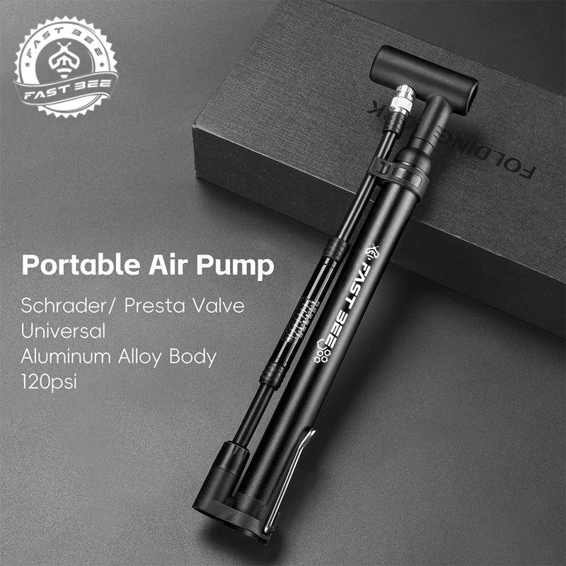 Pompe à air pour pneus de moto, vélo et VTT FAST BEE 120 PSI, mini pompe à air portable en aluminium haute pression, pompe à air pour vélo CO2