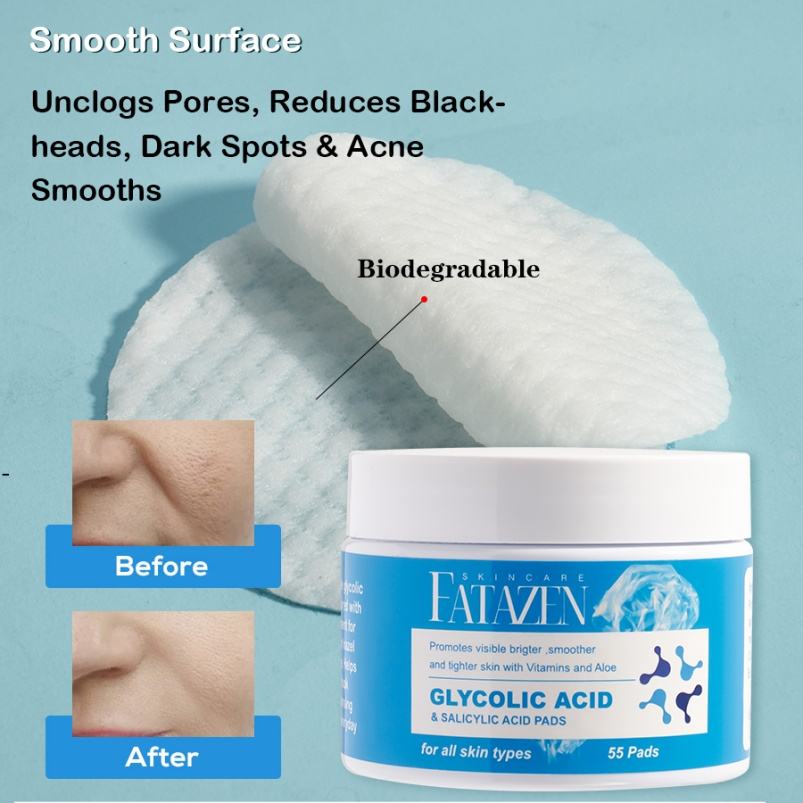Tampons exfoliants pour le visage de marque privée FATAZEN OEM à base d'acide salicylique glycolique à base d'AHA Masque anti-traitement pour le visage
