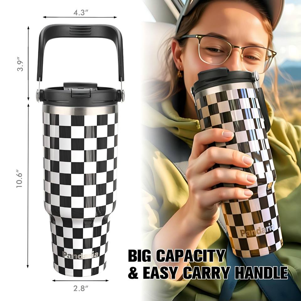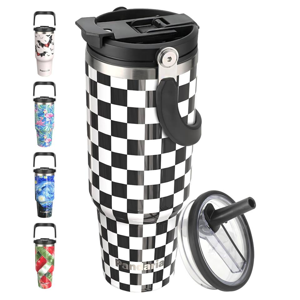 FBA Entrepôt Prêt Stock 40oz Poudre Solide Couleur Damier Enduit Gobelet Isolé avec Couvercles et Pailles Tasse Isolé