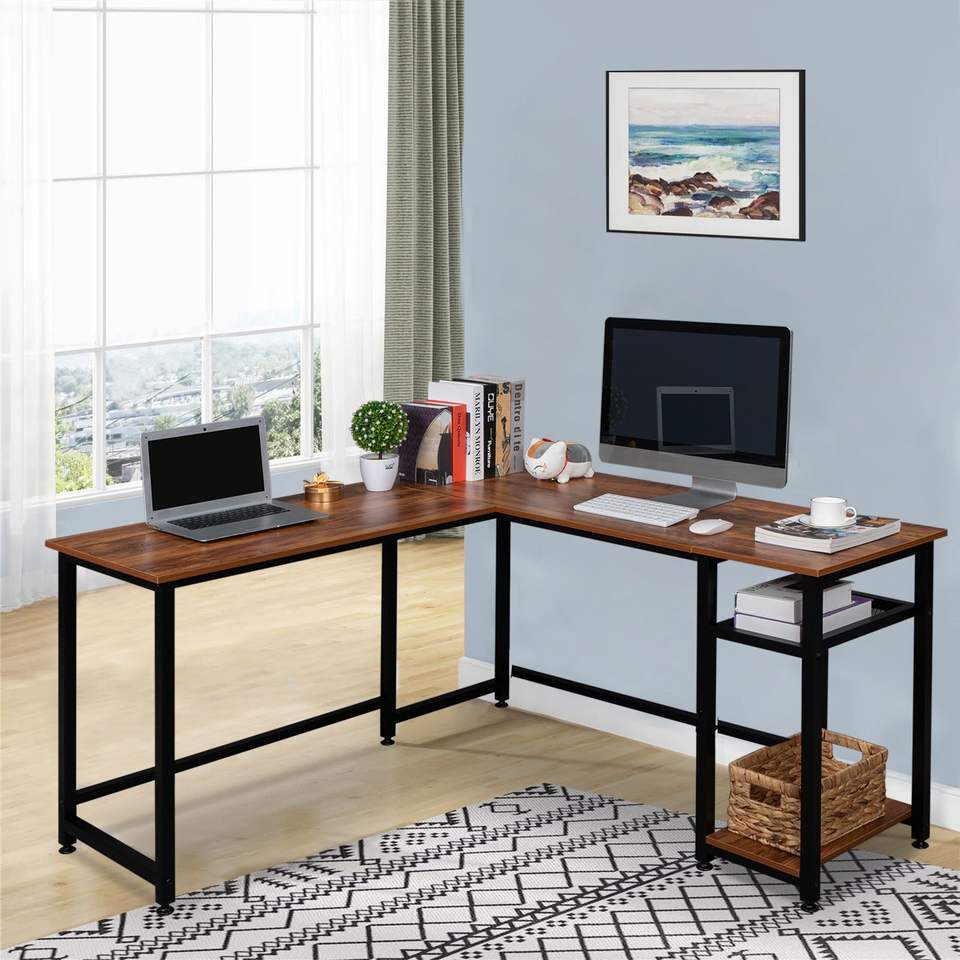 Bureau d'ordinateur FCH rétro couleur 140 cm en aggloméré avec placage triamine, en forme de L à angle droit
