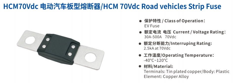 Fusible universel FCHFE 32V DC 250A 32V 36V 70V avec trous M8 et distance entre centres de 51 mm