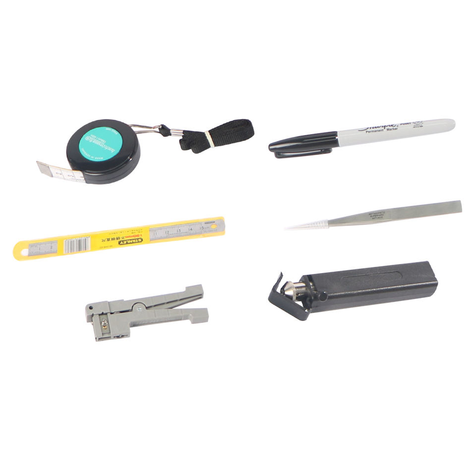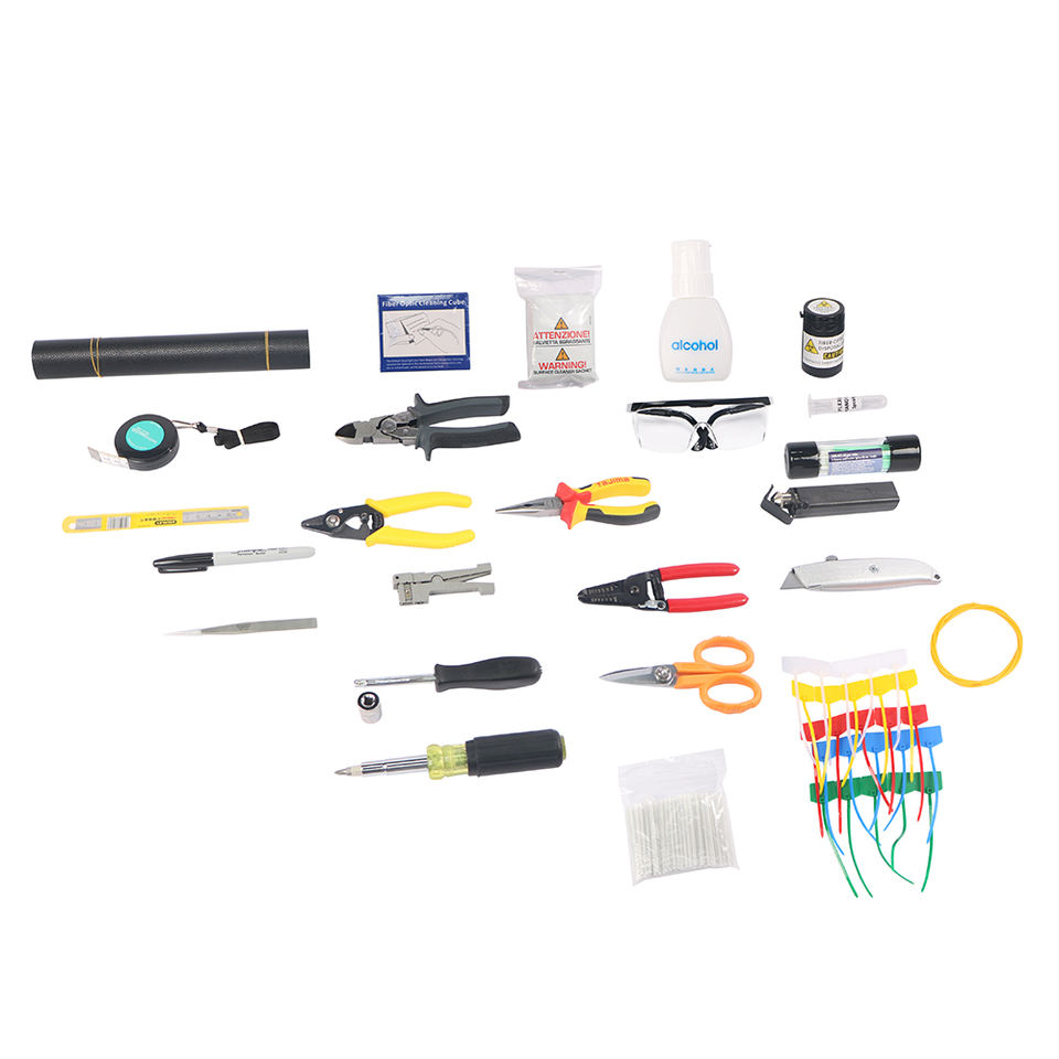 Kit de raccordement de fibres optiques FTTH FCST210601 comprenant des bâtonnets de nettoyage de fibres optiques, un coupe-câble en kevlar, un coupe-câble universel rond
