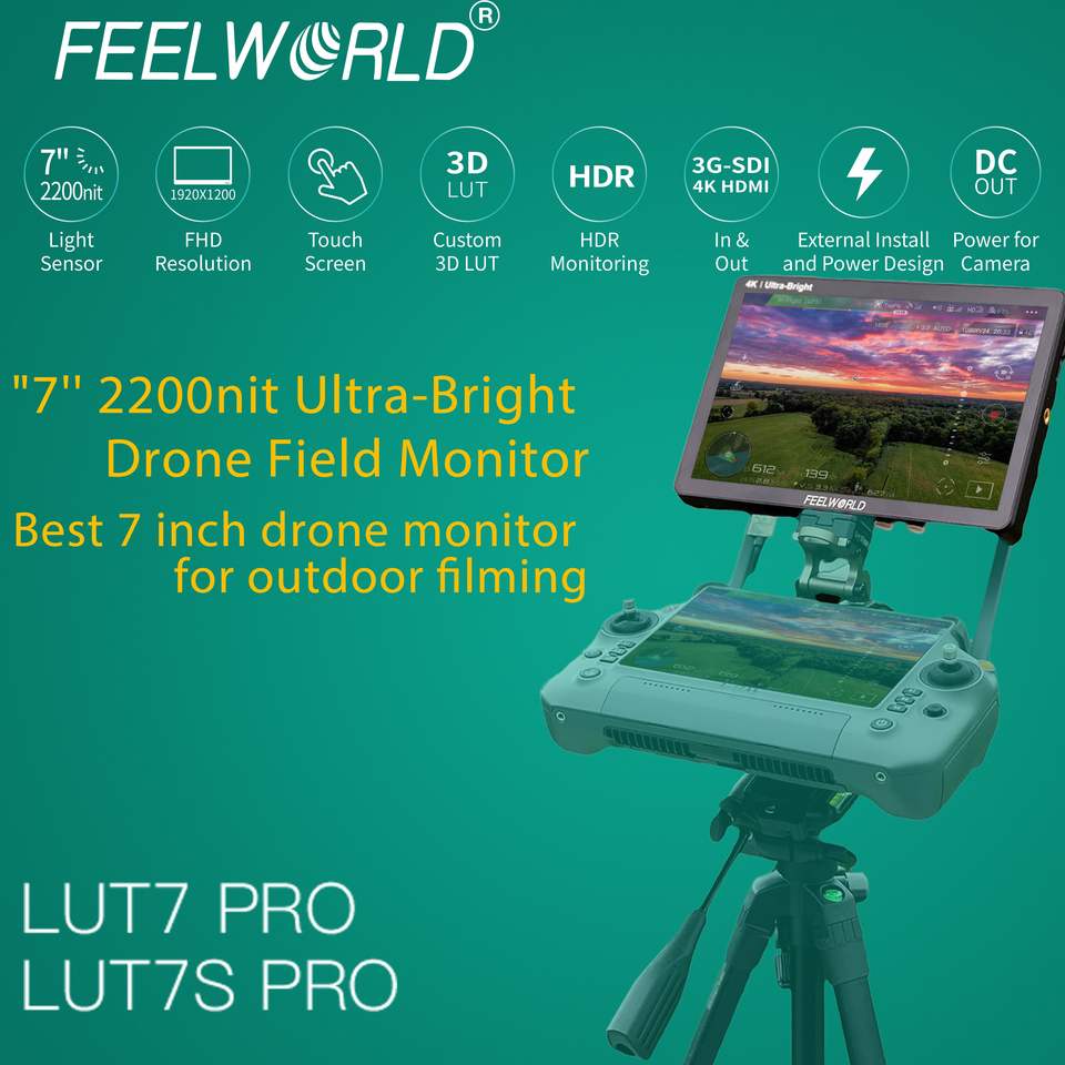 Moniteur Professionnel FEELWORLD LUT7 PRO 7" pour Caméra avec Alimentation AC Direct, Kit d'Installation F970, HDMI 4K, Personnalisation de l'Image de Démarrage, Lot