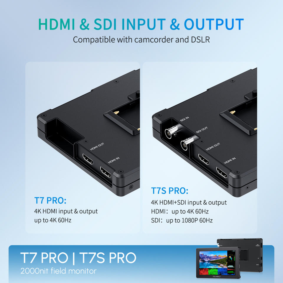 FEELWORLD T7 PRO Export 7 pouces caméra moniteur de terrain boîtier en aluminium 2000NIT haute luminosité 4K HDMI moniteur pour DSLR