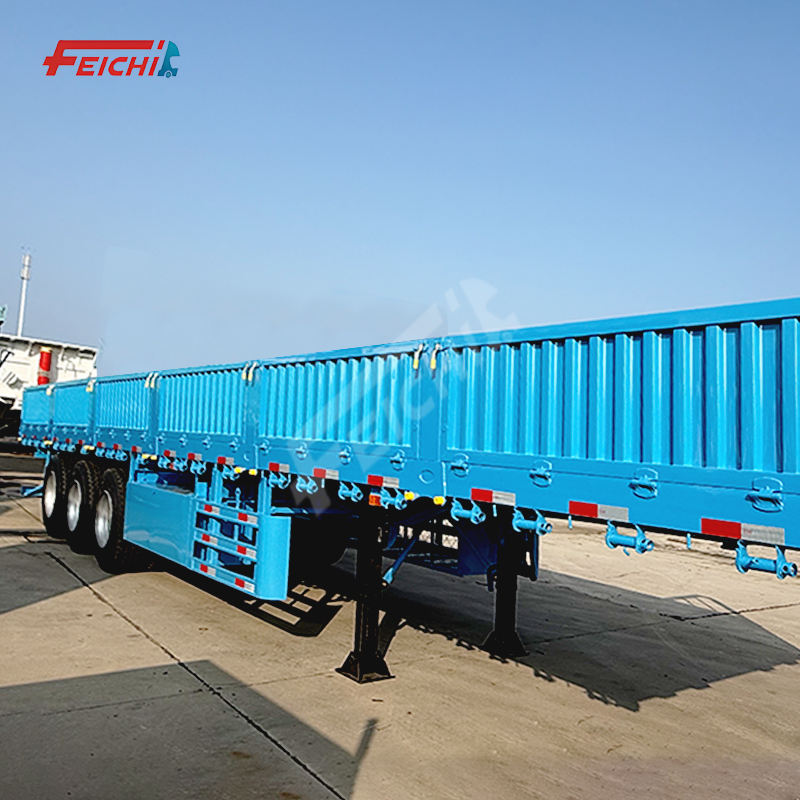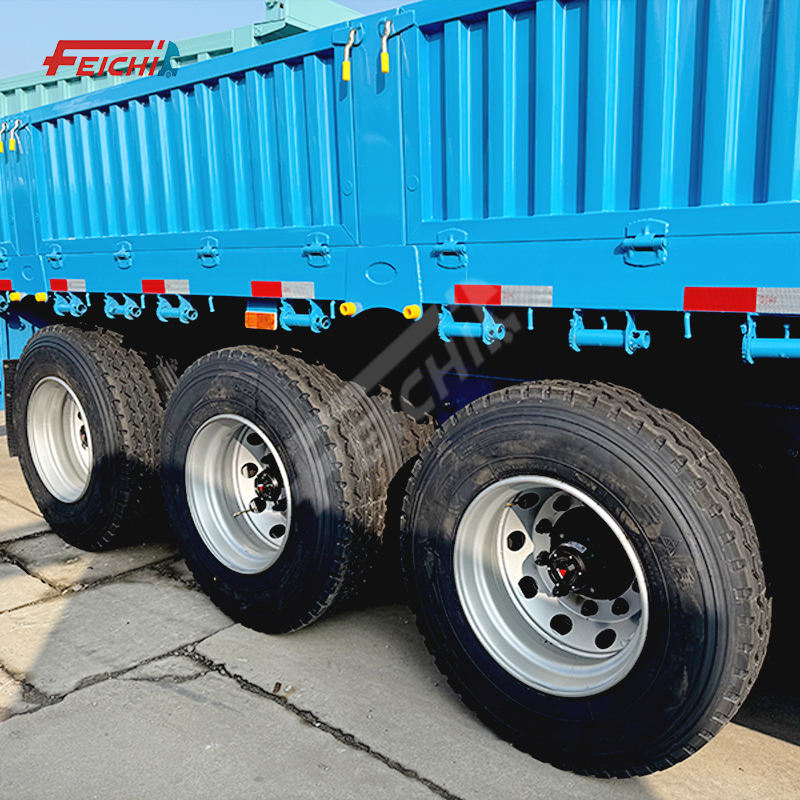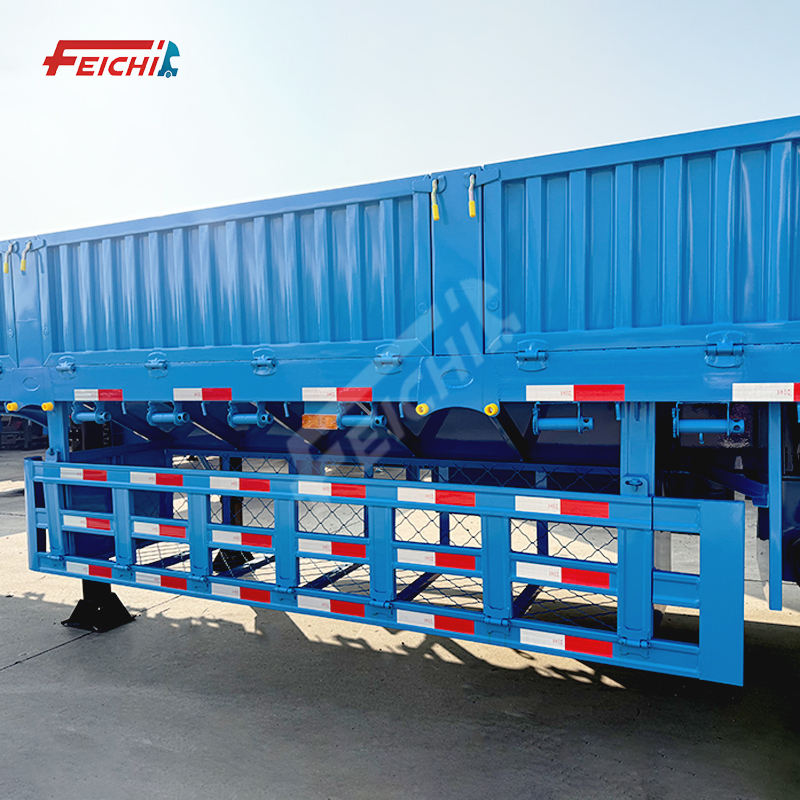 Semi-remorque FEICHI à 3 essieux avec panneaux latéraux et barrières de protection, semi-remorque en acier haute résistance, semi-remorques multi-essieux