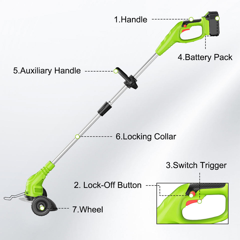 Anti-dérapant, Sans fil, Boîte d'herbe, Hauteur des poignées ajustablesDispositif