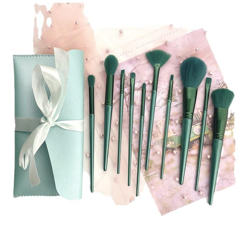 Pinceaux de maquillage FENGFLY, pinceaux synthétiques de qualité supérieure, fond de teint, poudre, anticernes, ombres à paupières, ensemble de 10 pinceaux, kit de pinceaux de maquillage verts