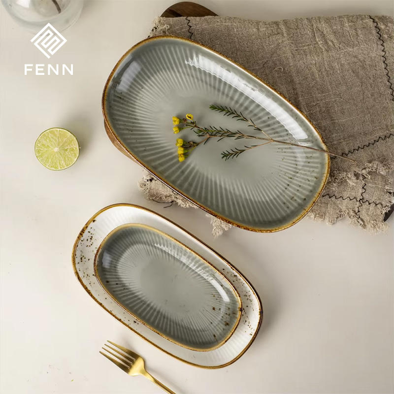 FENN Restaurant japonais Vintage assiette ovale en céramique café Brunch assiettes de service modernes plats avec roman de fruits Style rétro