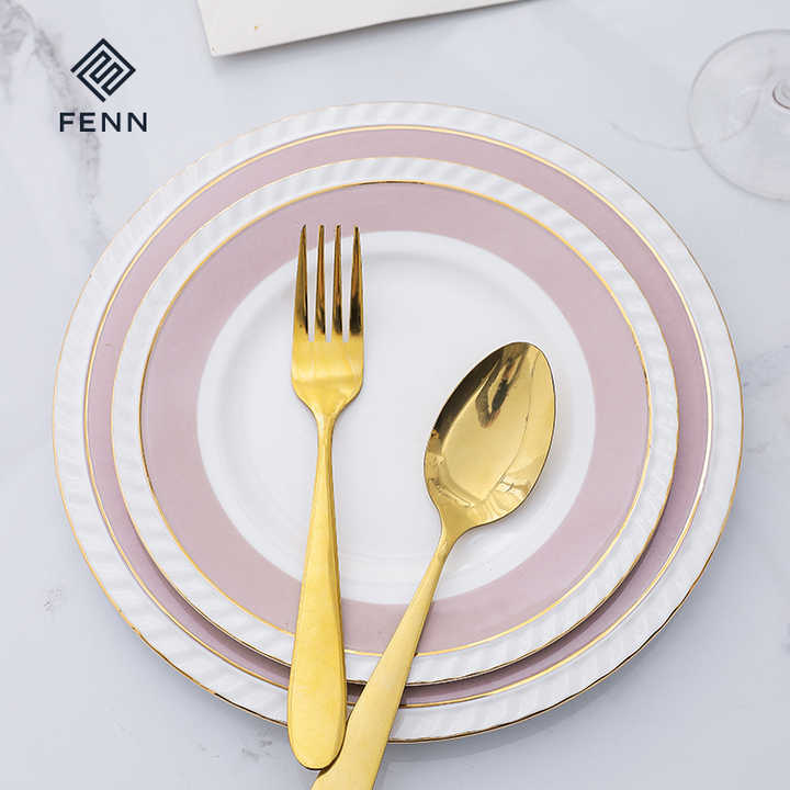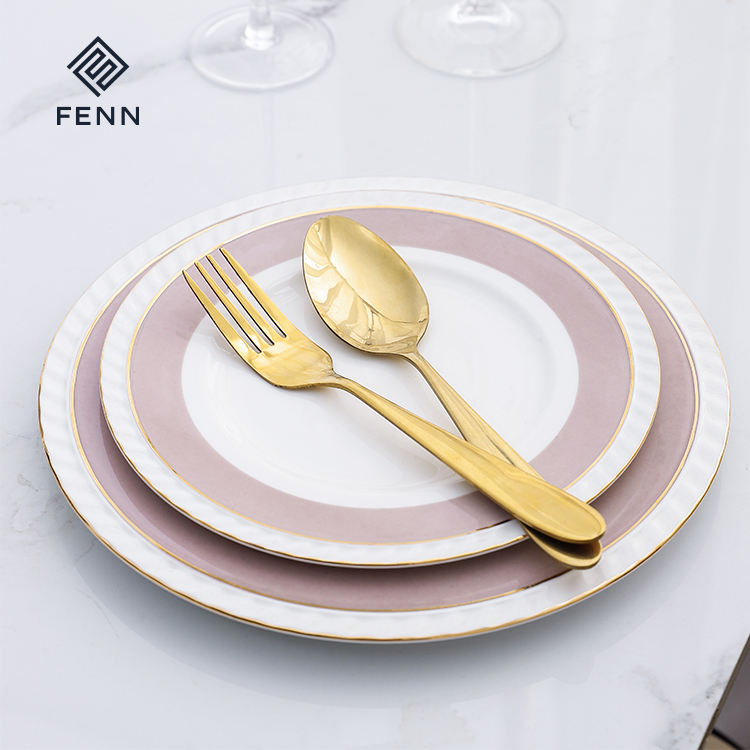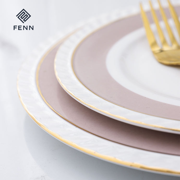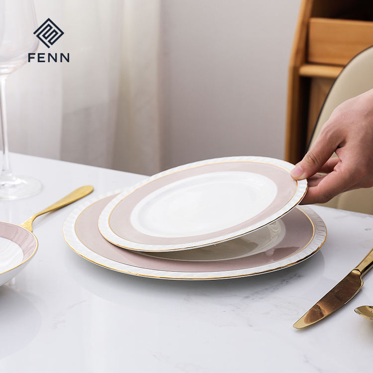 Product Name:Ceramic Porcelain Dinner Plate Luxury Golden Edge Porcelain Flat Plate