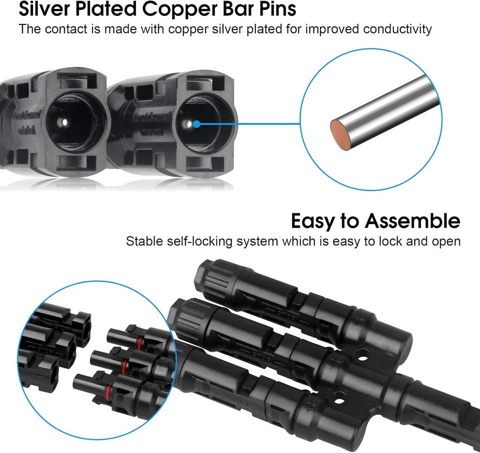 Nom du produit:Connecteur solaire en T, FFFM+MMMF par paire