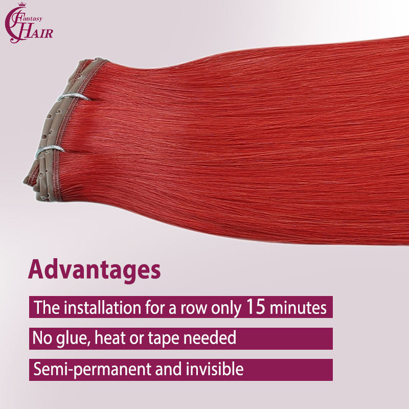 Extensions de cheveux naturels FH Invisible Hole Butterfly Weft, couleur rouge, Remy Genius XO Hole Weft, double trame papillon