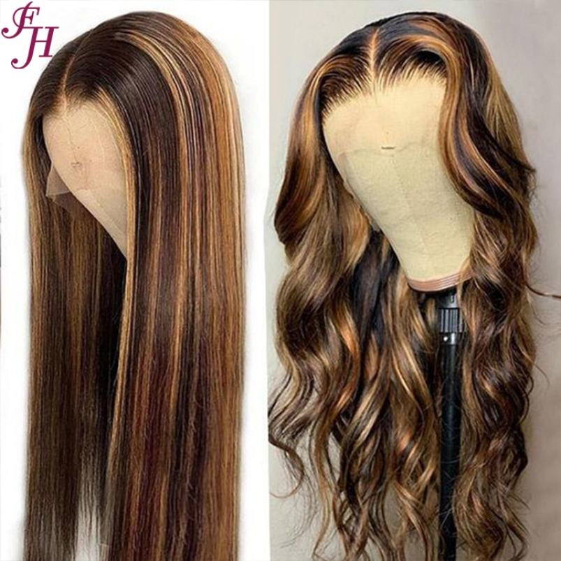 FH Perruques Lace Front 100 cheveux humains vierges pré-plumés 13x4 suisse Perruque frontale en dentelle transparente P4/27 Perruque droite