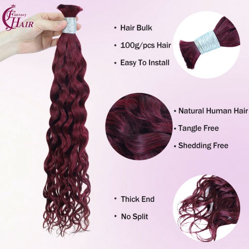 FH Unprocessed Water Wave Bulk Virgin Human Hair #99j No Weft Cabelo Human Hair Bundle for Braiding Boho Braids