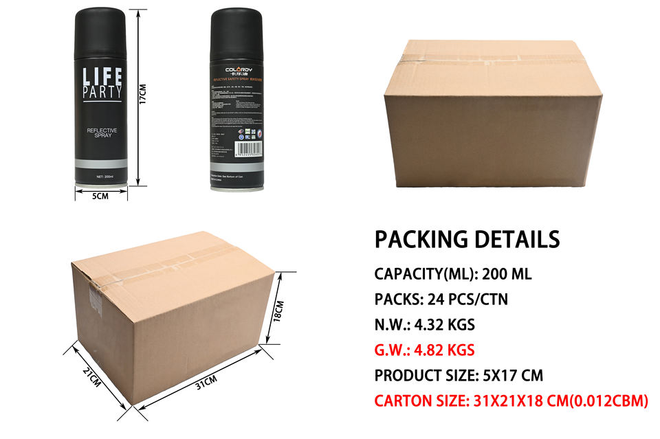 COLORDY 200ML Peinture Réfléchissante de Sécurité en Aérosol, Revêtement Acrylique à Base d'Eau pour Marquage Sportif et Routier, Vernis Polyvalent